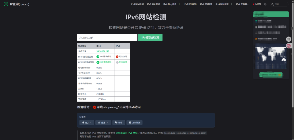 Currently, the Shopee platform primarily supports IPv4 networks. IPv6 has low compatibility in cross-border e-commerce scenarios.